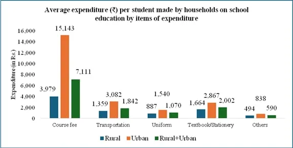 जैसा कि आप देख सकते हैं, जहां गांवों में ज्यादातर बच्चे सरकारी स्कूलों में पढ़ते हैं, शहरों में चीजें बिलकुल उलटी हैं. शहरी क्षेत्रों में 51% से ज्यादा बच्चे बिना सहायता वाले प्राइवेट स्कूलों में पढ़ रहे हैं.